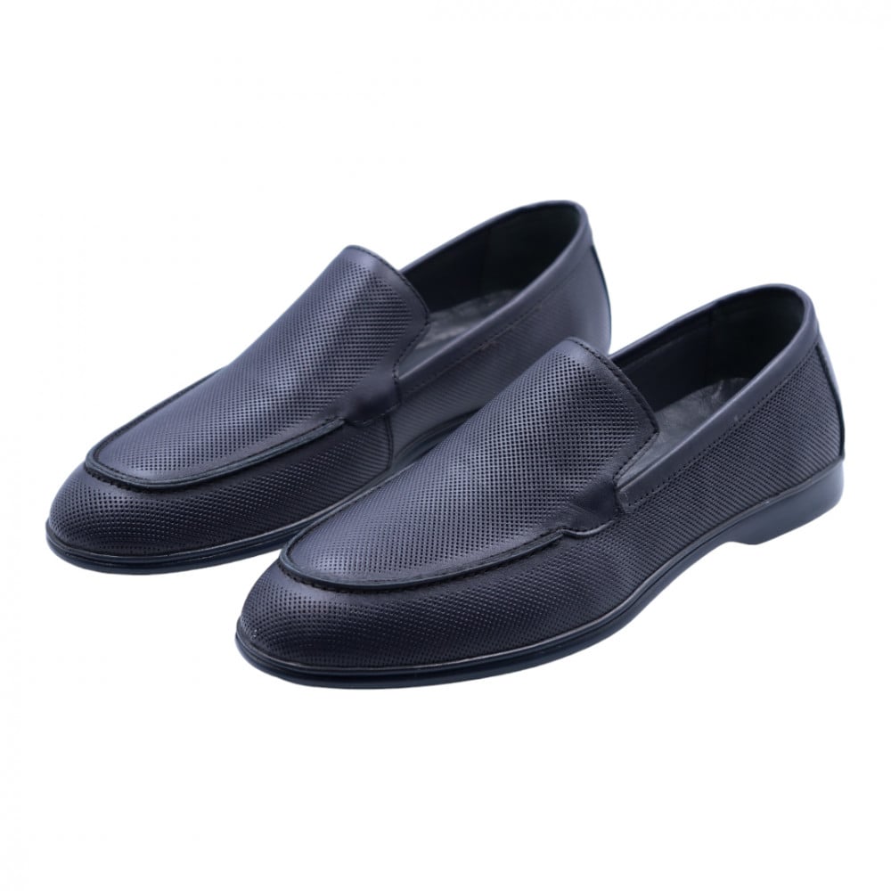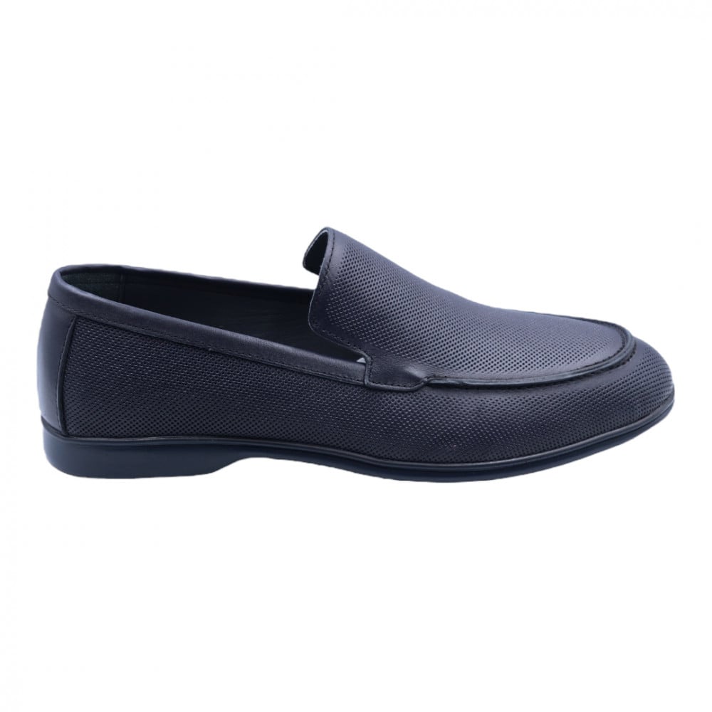 حذاء رسمي مخرم بالكامل بدون رباط جلد طبيعي بلون أزرق غامق