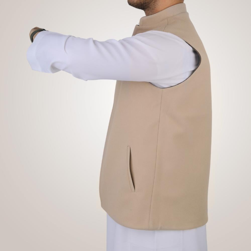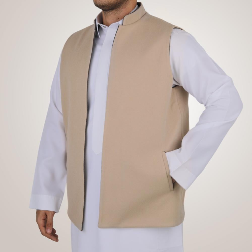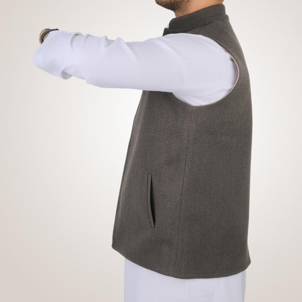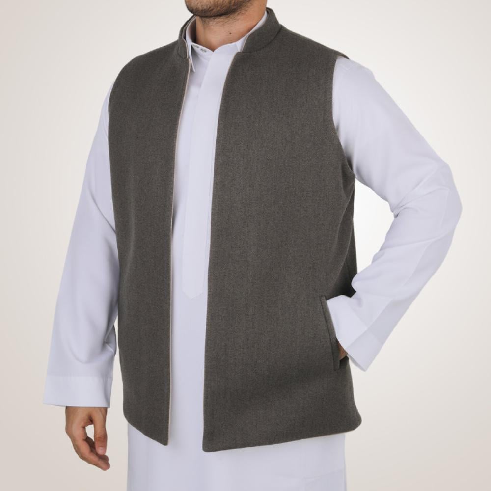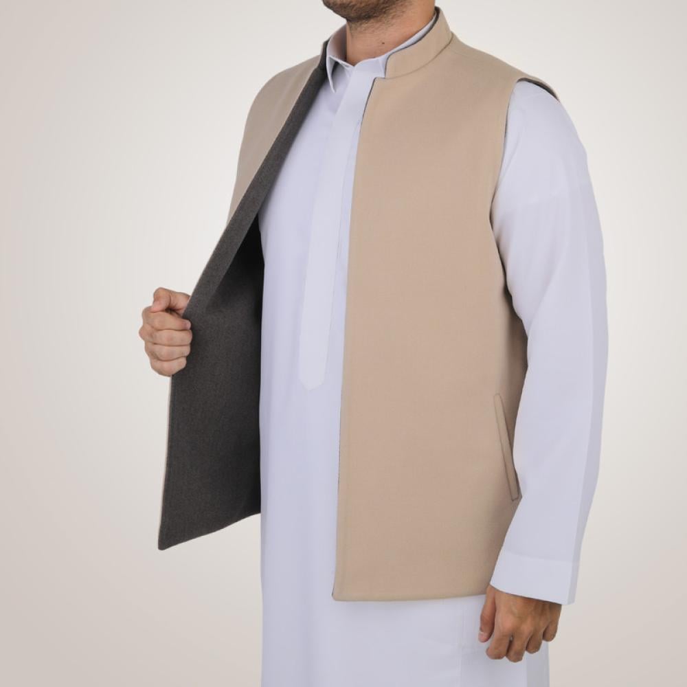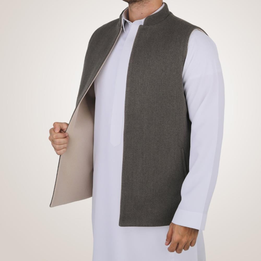 سديري رجالي وجهين بدون ازرار - رمادي غامق و بيج