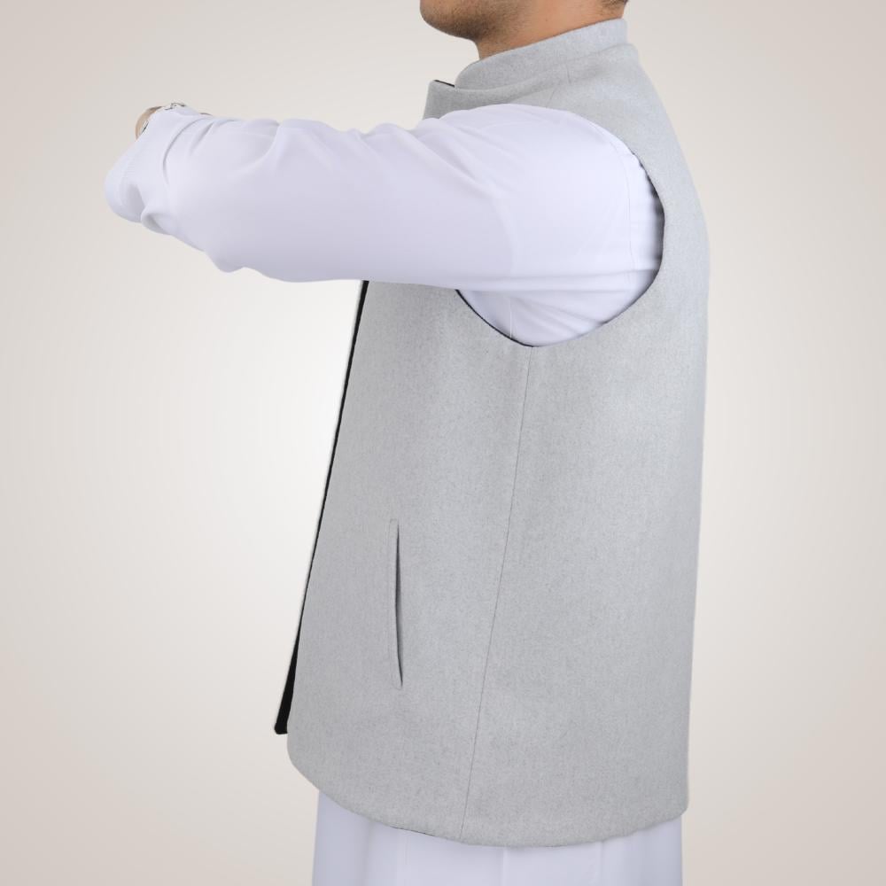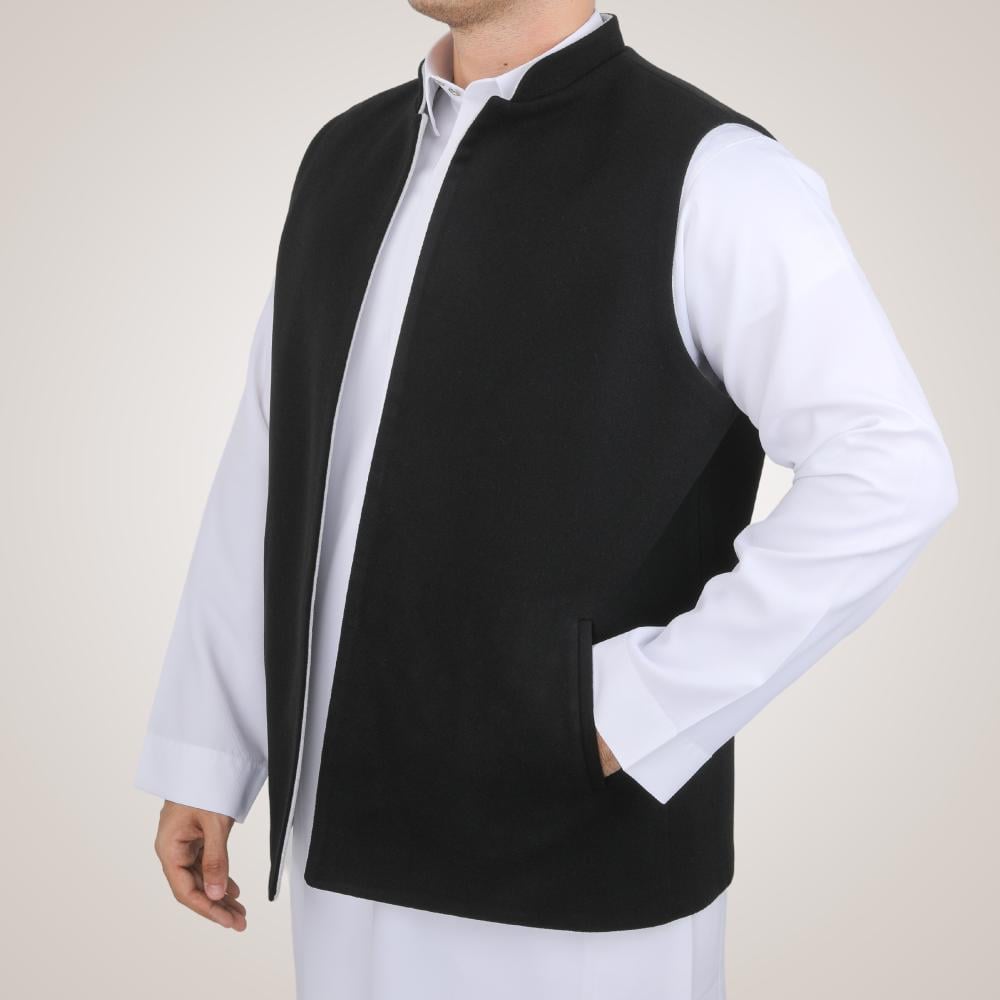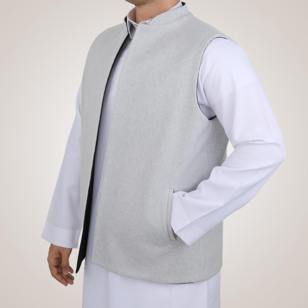 سديري رجالي وجهين بدون ازرار - أسود ورمادي غامق