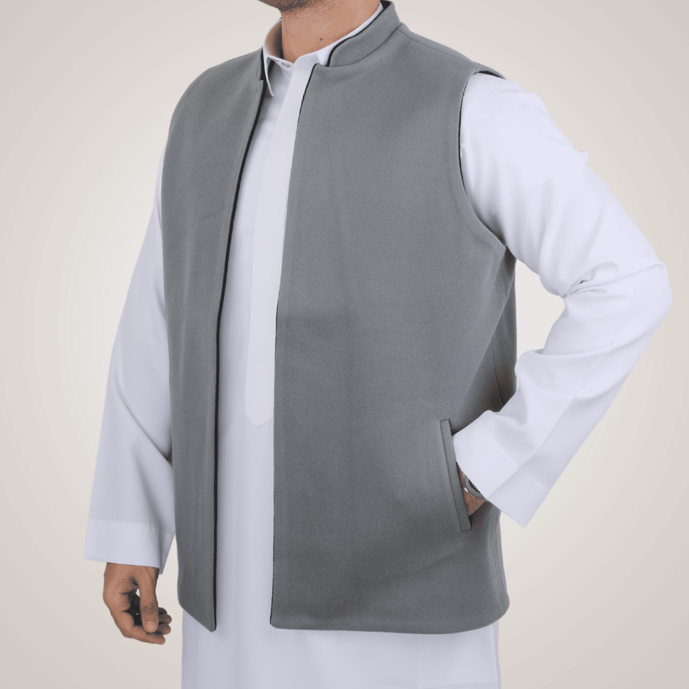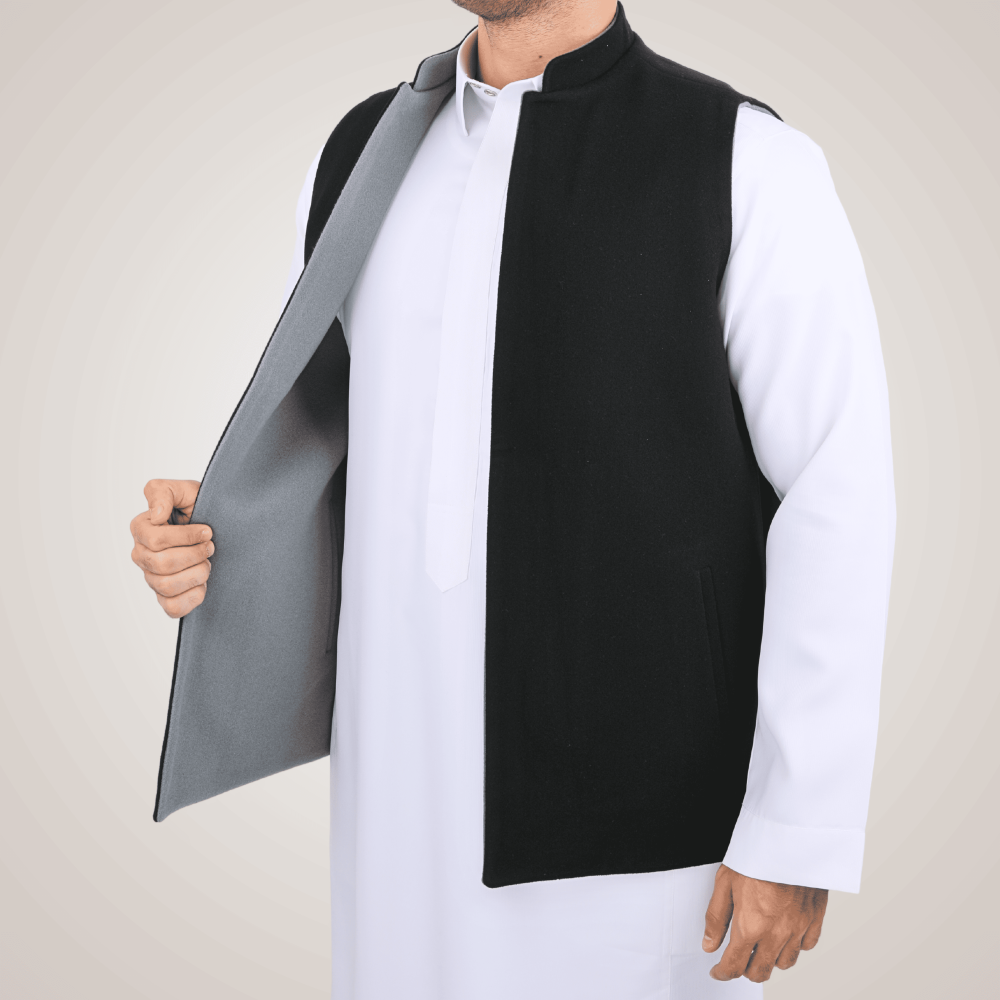 سديري رجالي وجهين بدون ازرار - رمادي غامق واسود