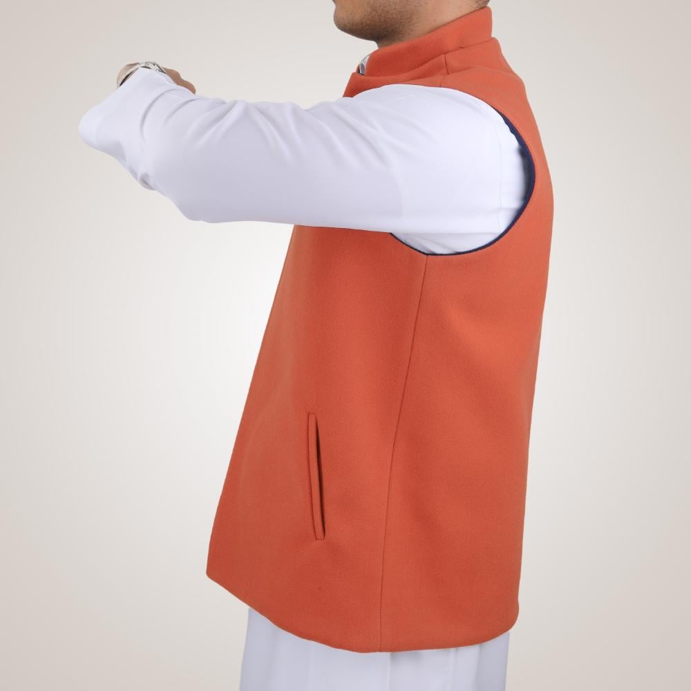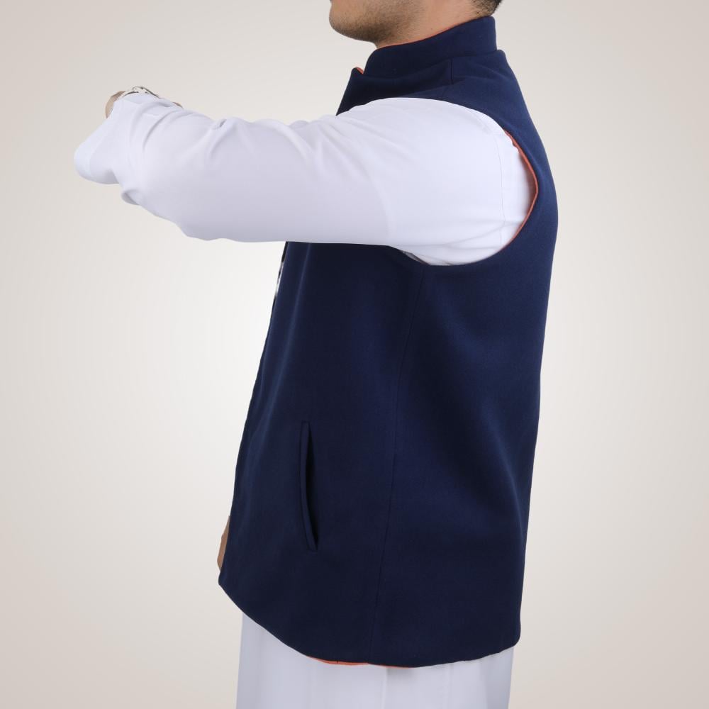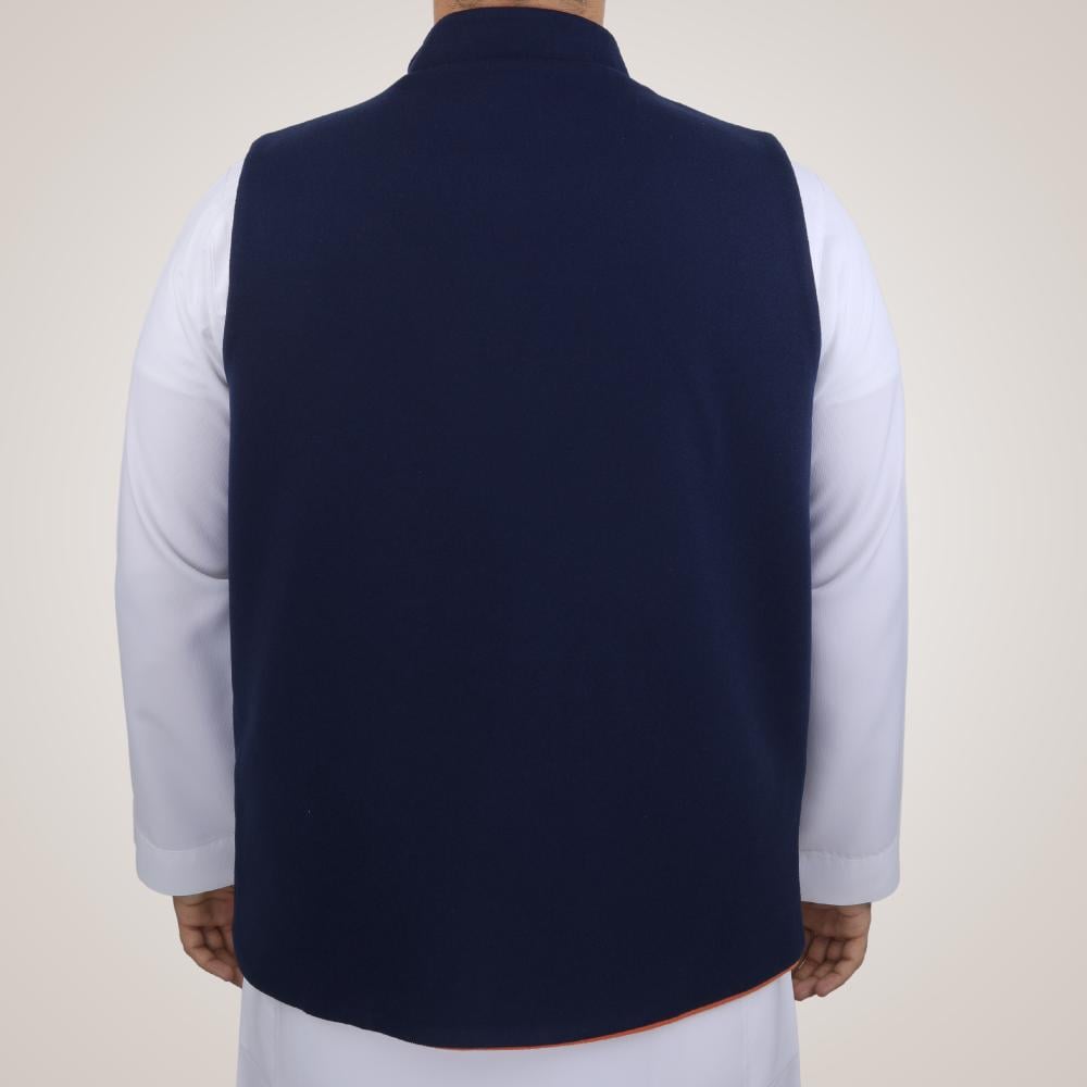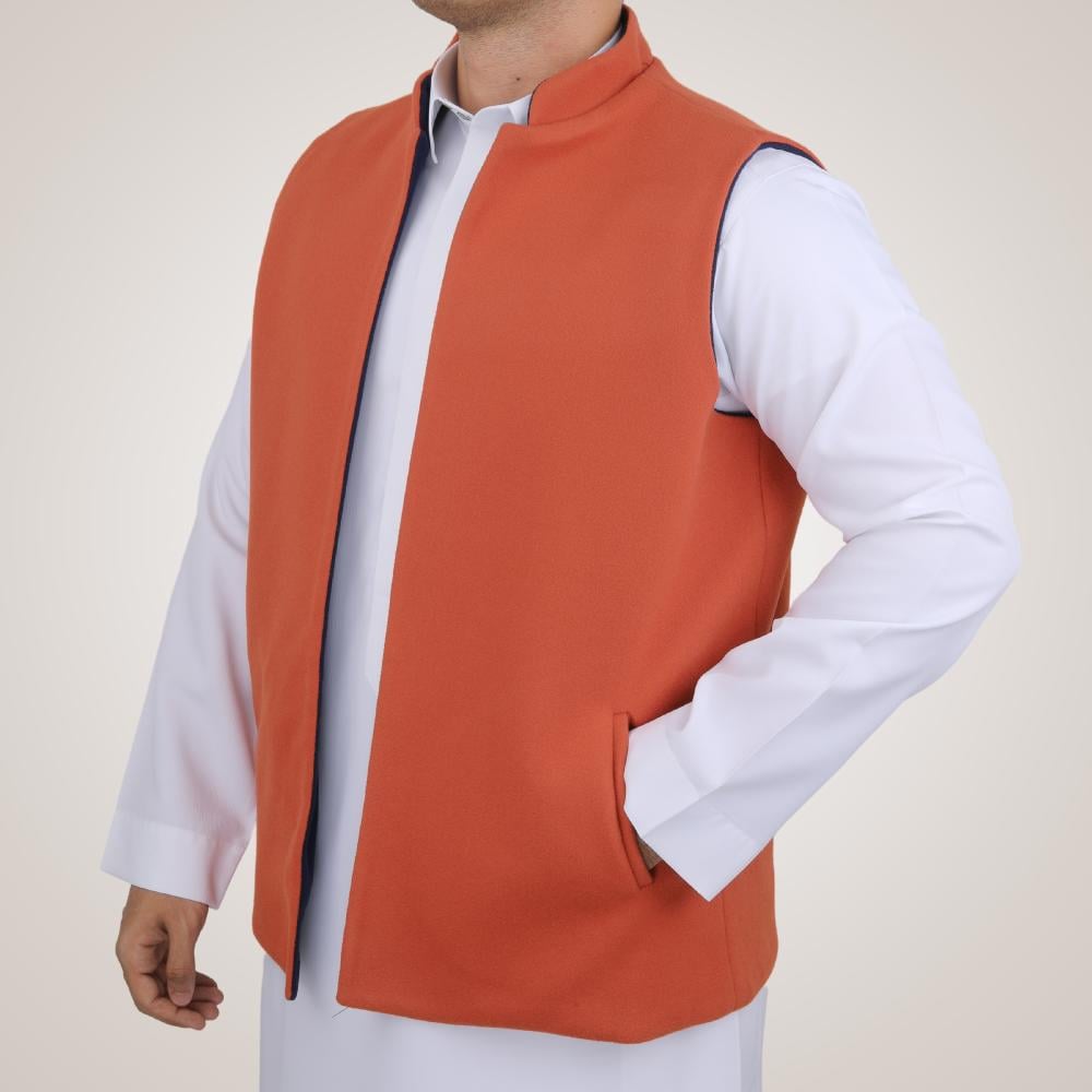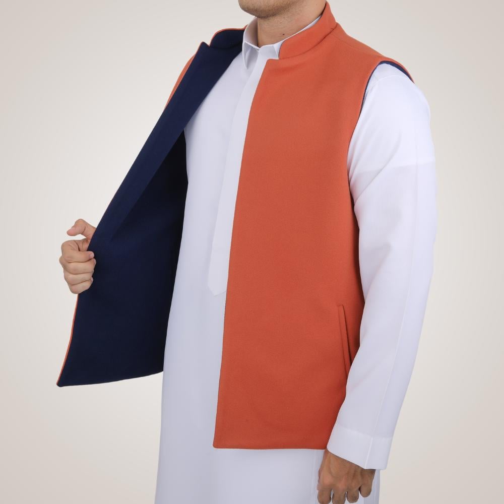 سديري رجالي وجهين بدون ازرار - كحلي وبرتقالي